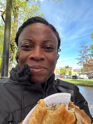 Before I begin let me just apologise as I forgot to take pics as it was classroom stuff and then I was concentrating hard on riding on a wet and cold day. Therefore all the pics here are of me enjoying an actual day of sunshine this week when I decided to ride to Bourton-on-the-water for a pasty and a cup of tea. As you may have noticed – almost all my bike rides are centred on food😊